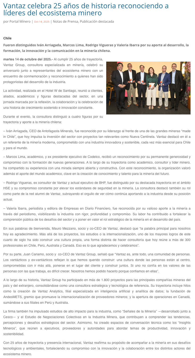 Vantaz celebra 25 años de historia reconociendo a líderes del ecosistema minero - (nuevaminería online)