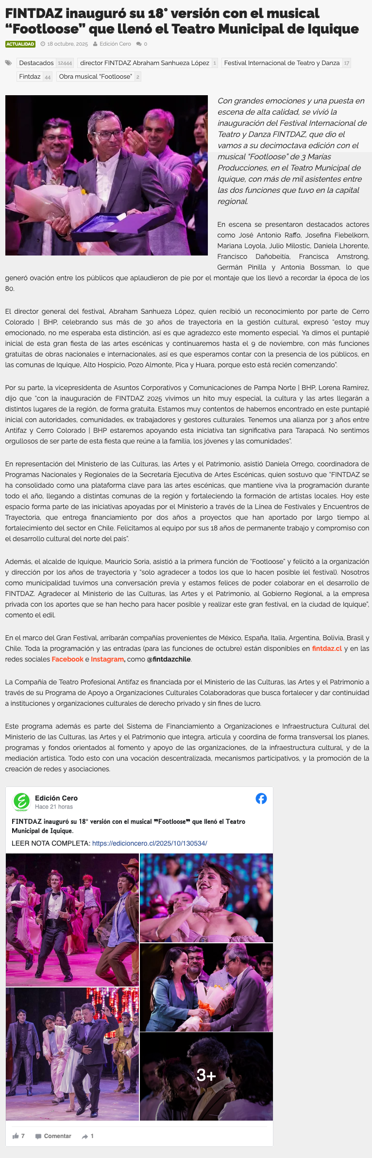 FINTDAZ inauguró su 18º versión con el musical “Footloose” que llenó el Teatro Municipal de Iquique - (El Longino de Iquique)