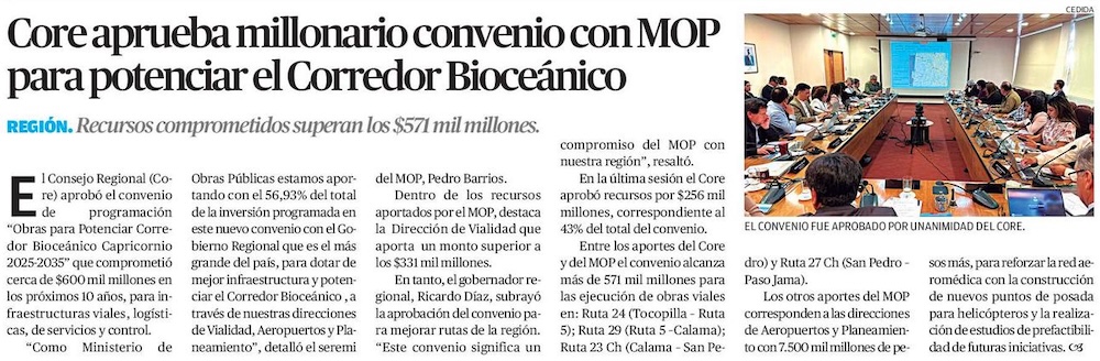Aprueban convenio que destinará casi $600 mil millones al Corredor Bioceánico de Capricornio - (timeline)