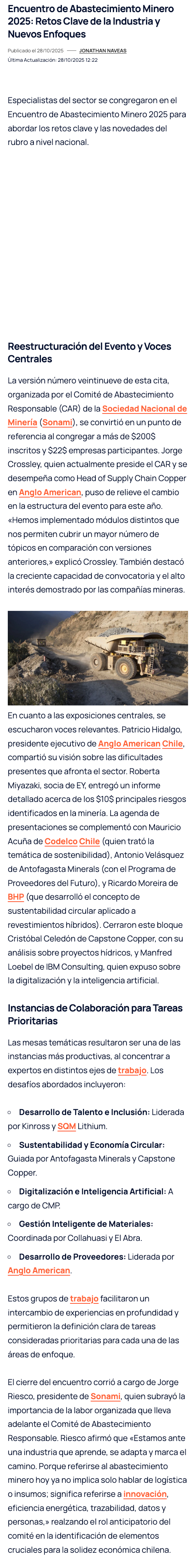 Más de 200 ejecutivos participaron en el Encuentro de Abastecimiento Minero 2025 - (mch.cl)