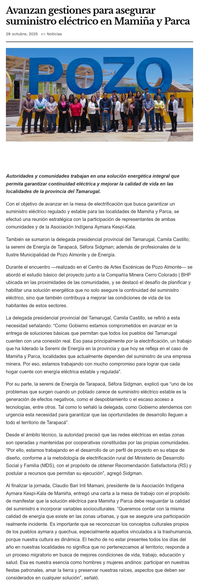 Avanzan gestiones para asegurar suministro eléctrico en Mamiña y Parca - (El Longino de Iquique)