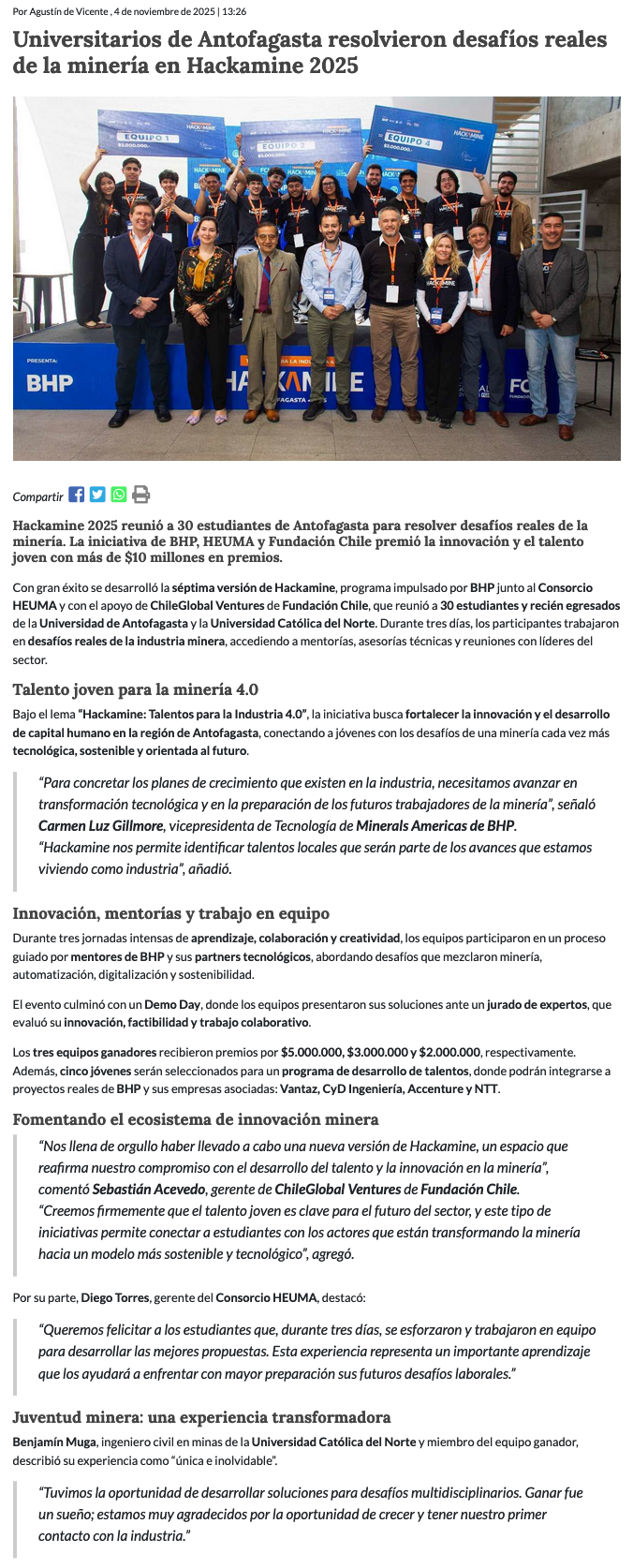 Durante tres días universitarios de Antofagasta resolvieron desafíos reales de la industria minera en Hackamine 2025 - (mvcomunicaciones.cl)