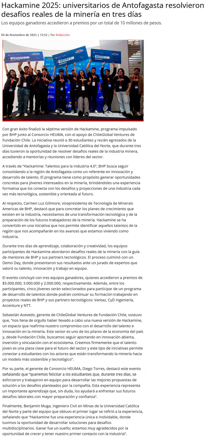 Durante tres días universitarios de Antofagasta resolvieron desafíos reales de la industria minera en Hackamine 2025 - (tierramarillano.cl)