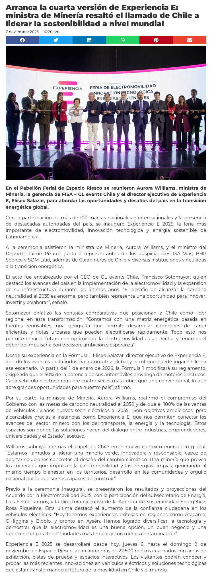 Comienza Experiencia E 2025: ministra Aurora Williams destaca el liderazgo de Chile en sostenibilidad y minería verde - (mineriayfuturo.cl)