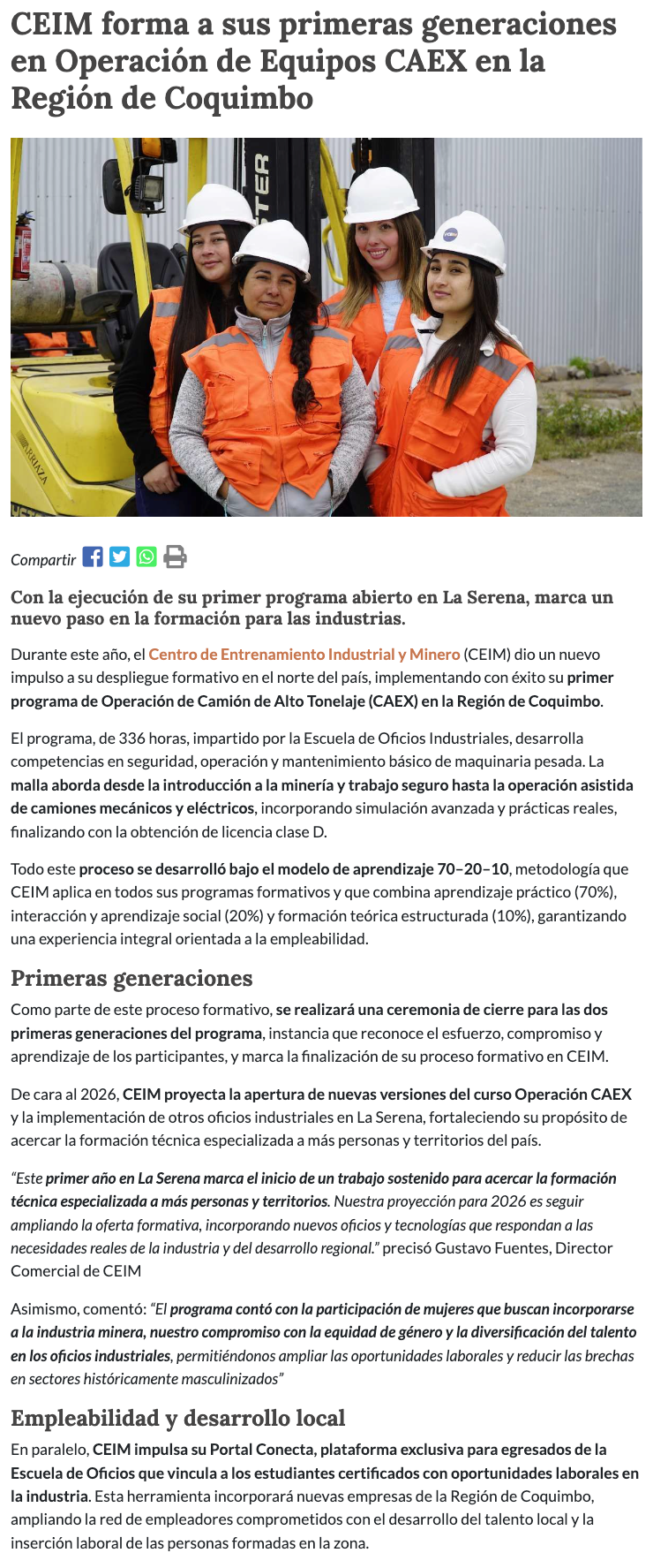 CEIM forma a sus primeras generaciones en Operación de Equipos CAEX en la Región de Coquimbo - (madero.cl)