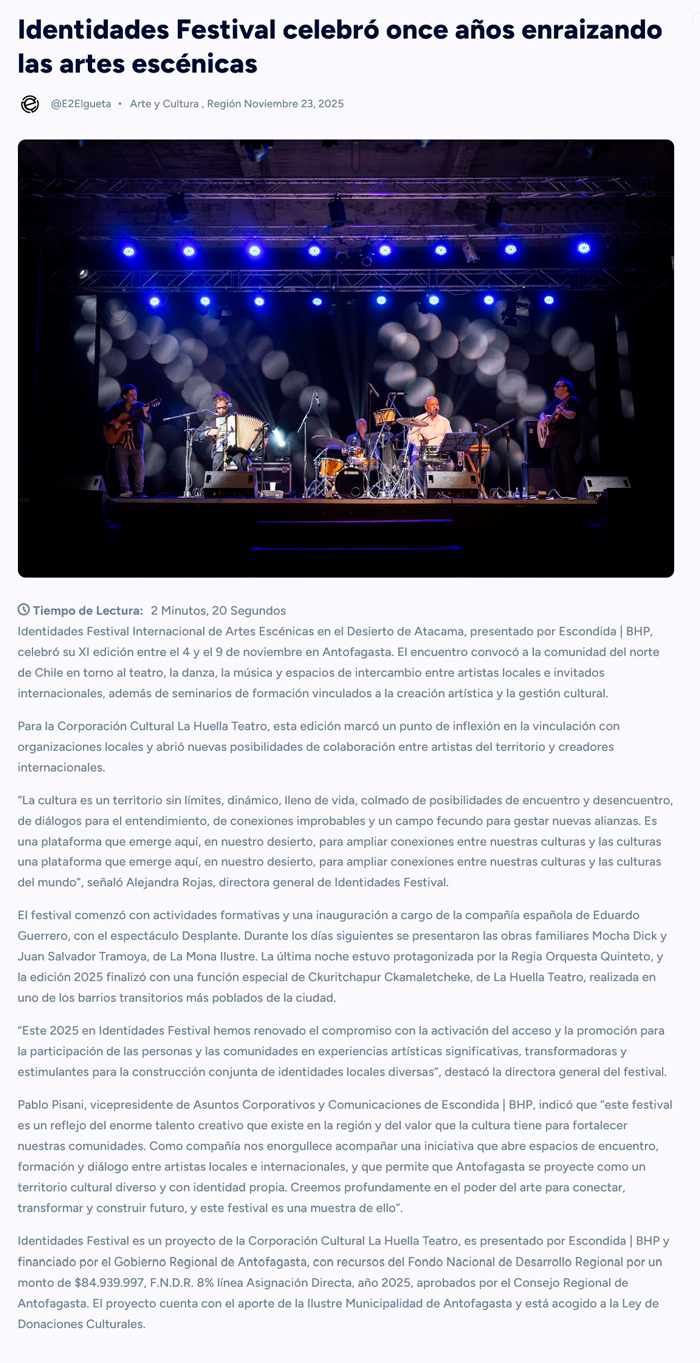 Identidades Festival celebró once años de vida enraizando las artes escénicas en Antofagasta - (antofacity.com)