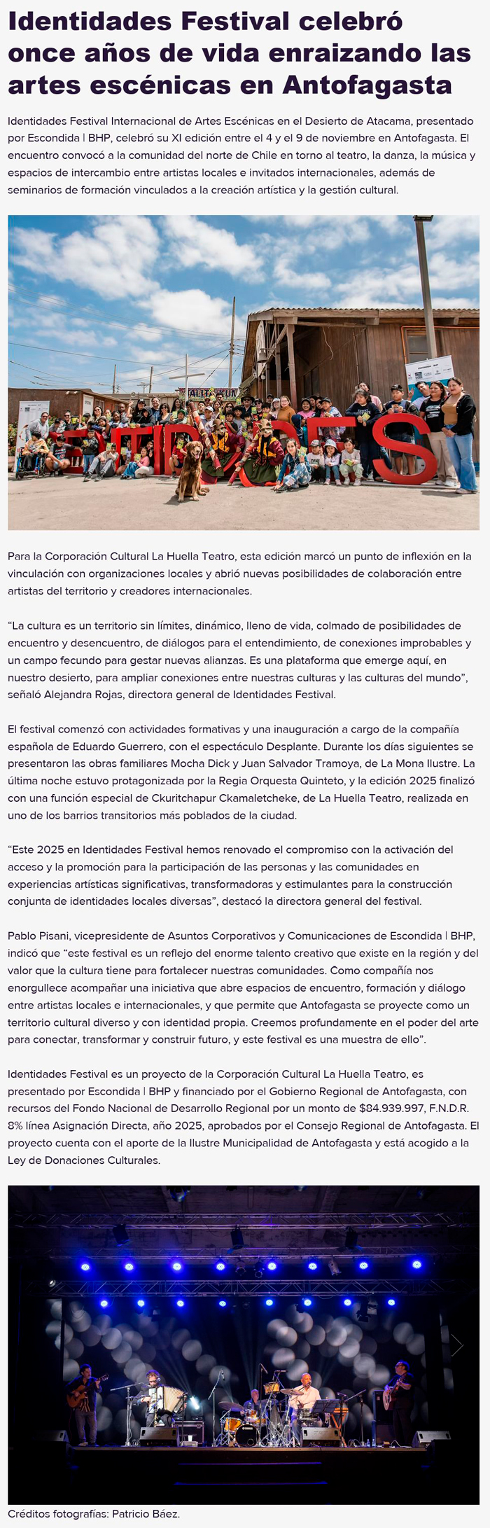 Identidades Festival celebró once años de vida enraizando las artes escénicas en Antofagasta - (antofacity.com)