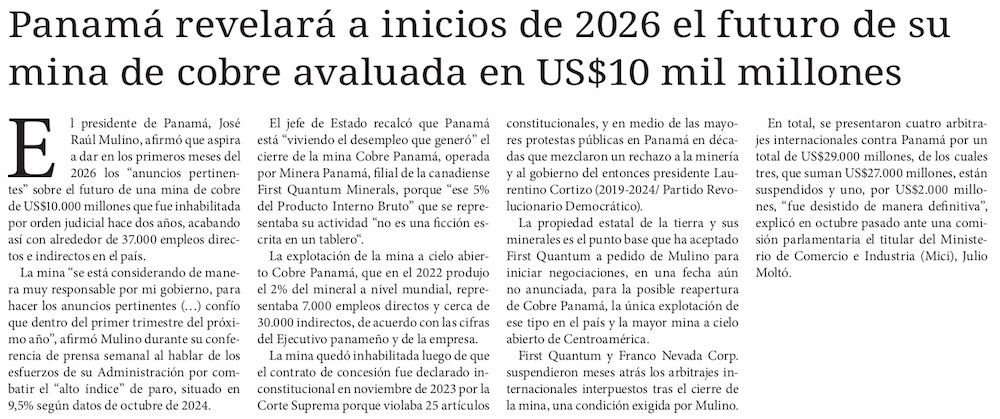 Panamá revelará a inicios de 2026 el futuro de su mina de cobre - (El Pingüino)
