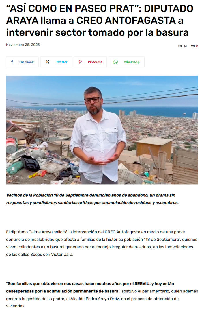 “Así como en paseo Prat”: Diputado Araya llama a creo Antofagasta a intervenir sector tomado por la basura - (antofagastaonline.cl)