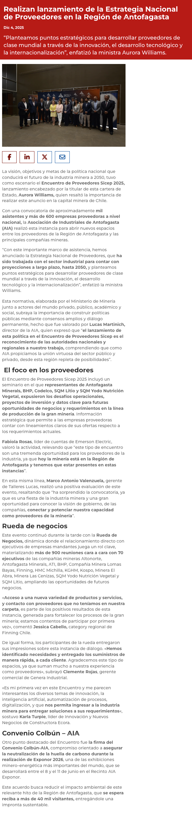 Antofagasta lanza Estrategia Nacional de Proveedores mineros - (norteonline.cl)