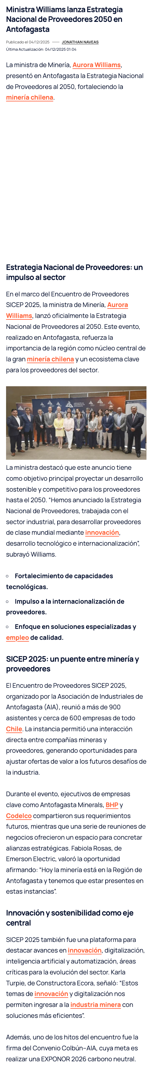 Lanzan en Antofagasta la Estrategia Nacional de Proveedores: definirá los desafíos de la industria minera al 2050 - (timeline)