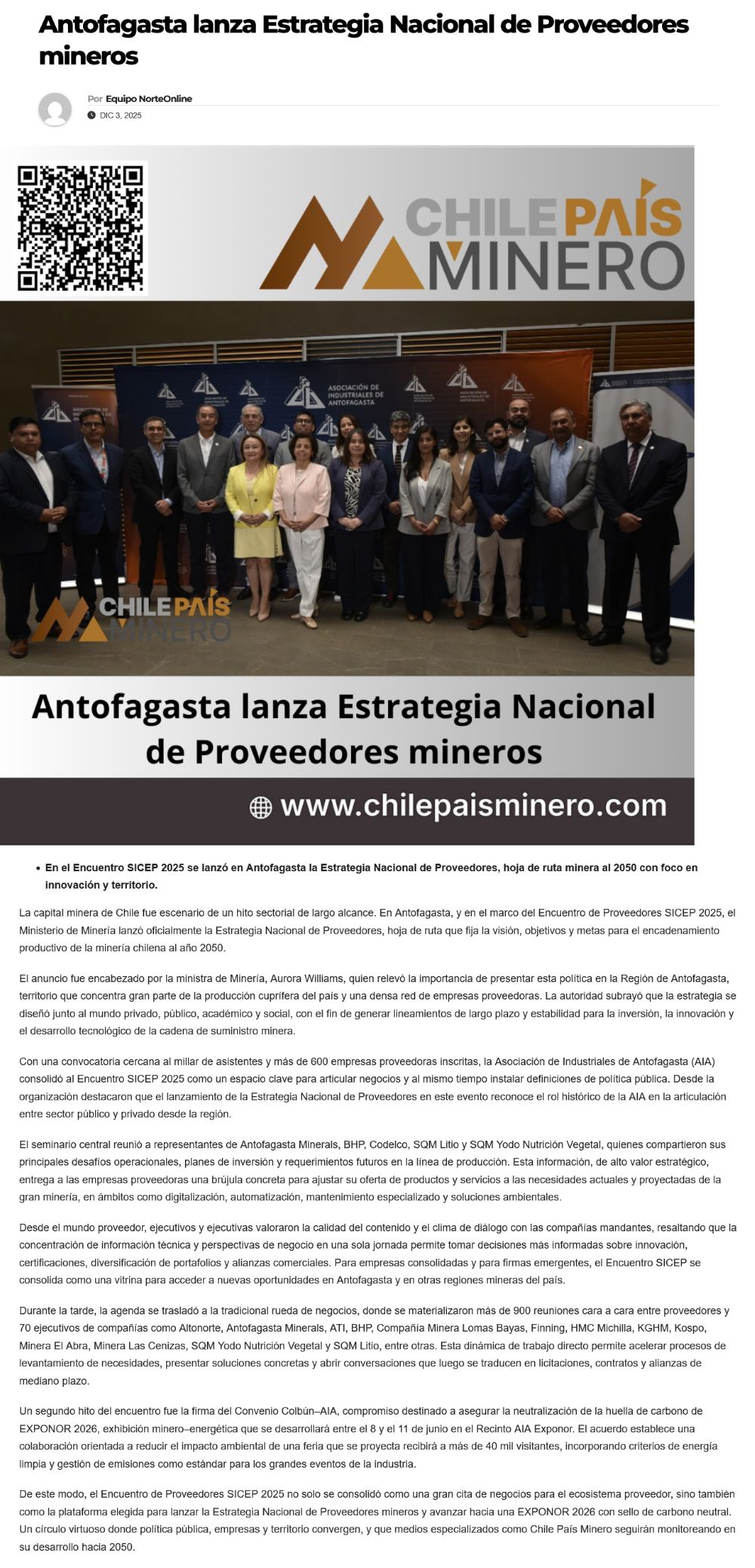 Lanzan en Antofagasta la Estrategia Nacional de Proveedores: definirá los desafíos de la industria minera al 2050 - (timeline)