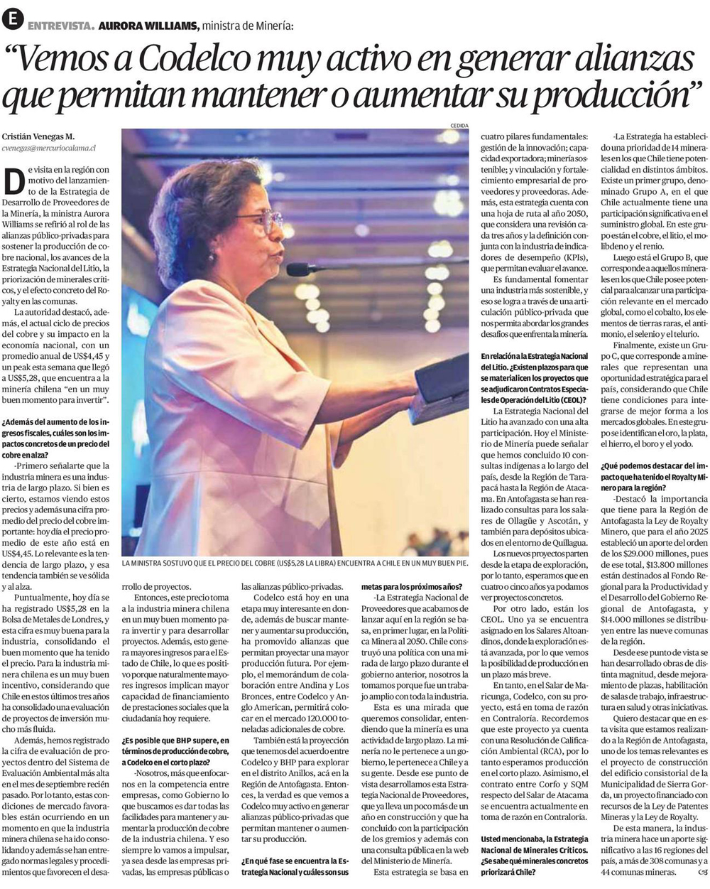 "Vemos a Codelco muy activo en generar alianzas que permitan mantener o aumentar su producción" - (El Mercurio de Antofagasta)