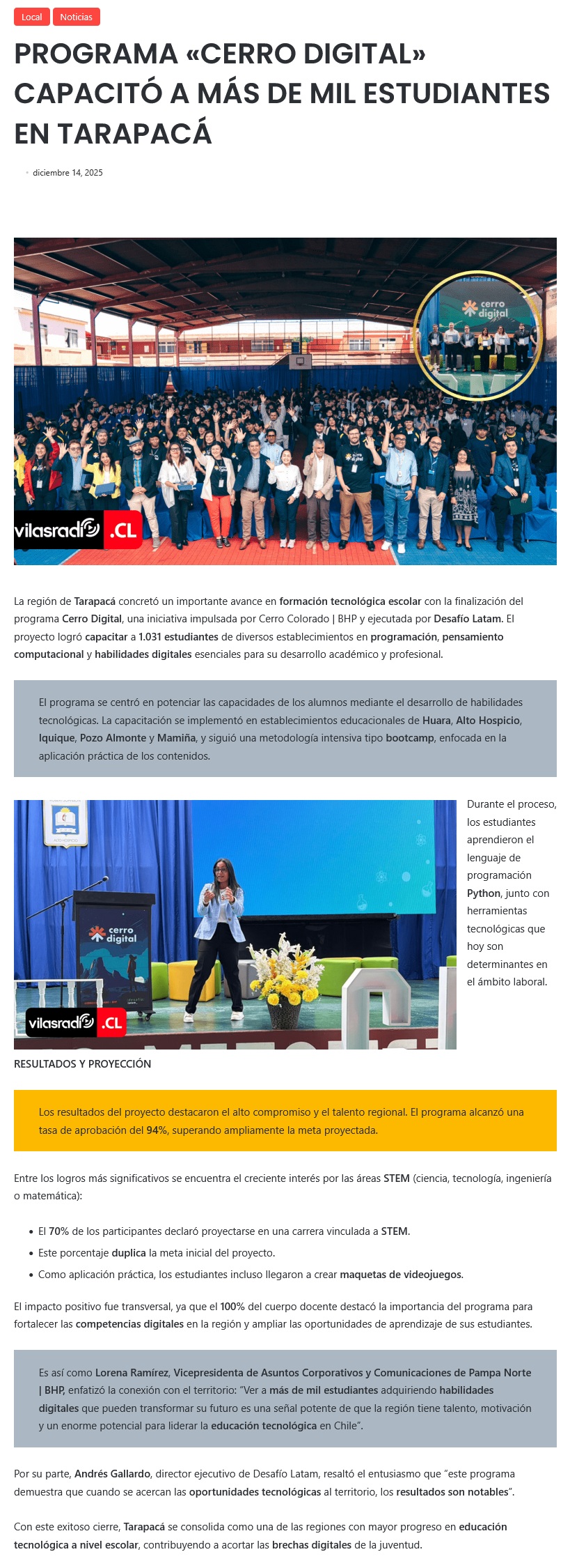 Más de 1.000 estudiantes de Tarapacá fueron capacitados por Cerro Colorado | BHP en habilidades tecnológicas claves para su futuro - (elreporterodeiquique)