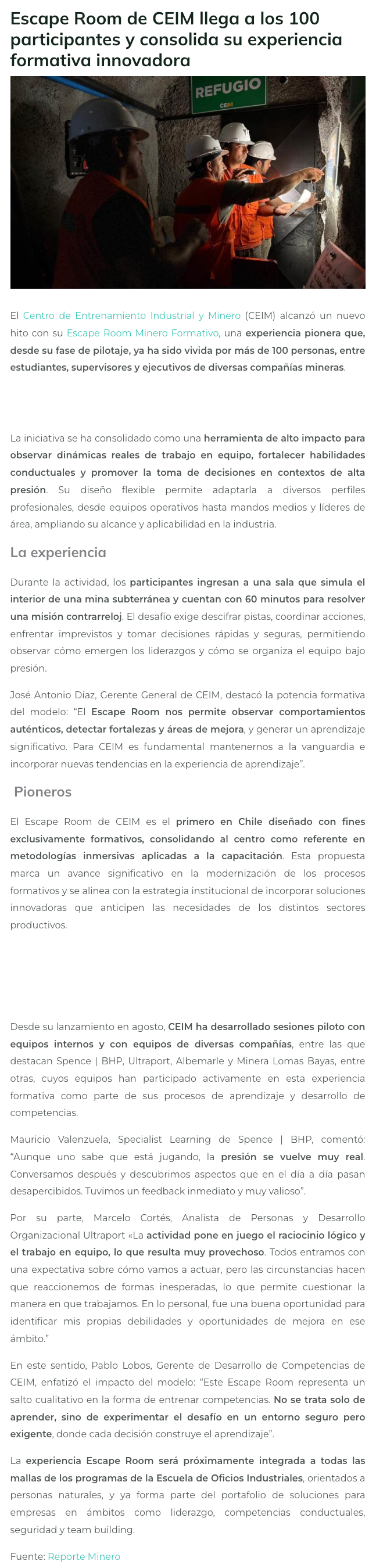 Escape Room de CEIM llega a los 100 participantes y consolida su experiencia formativa innovadora - (reporteminero)