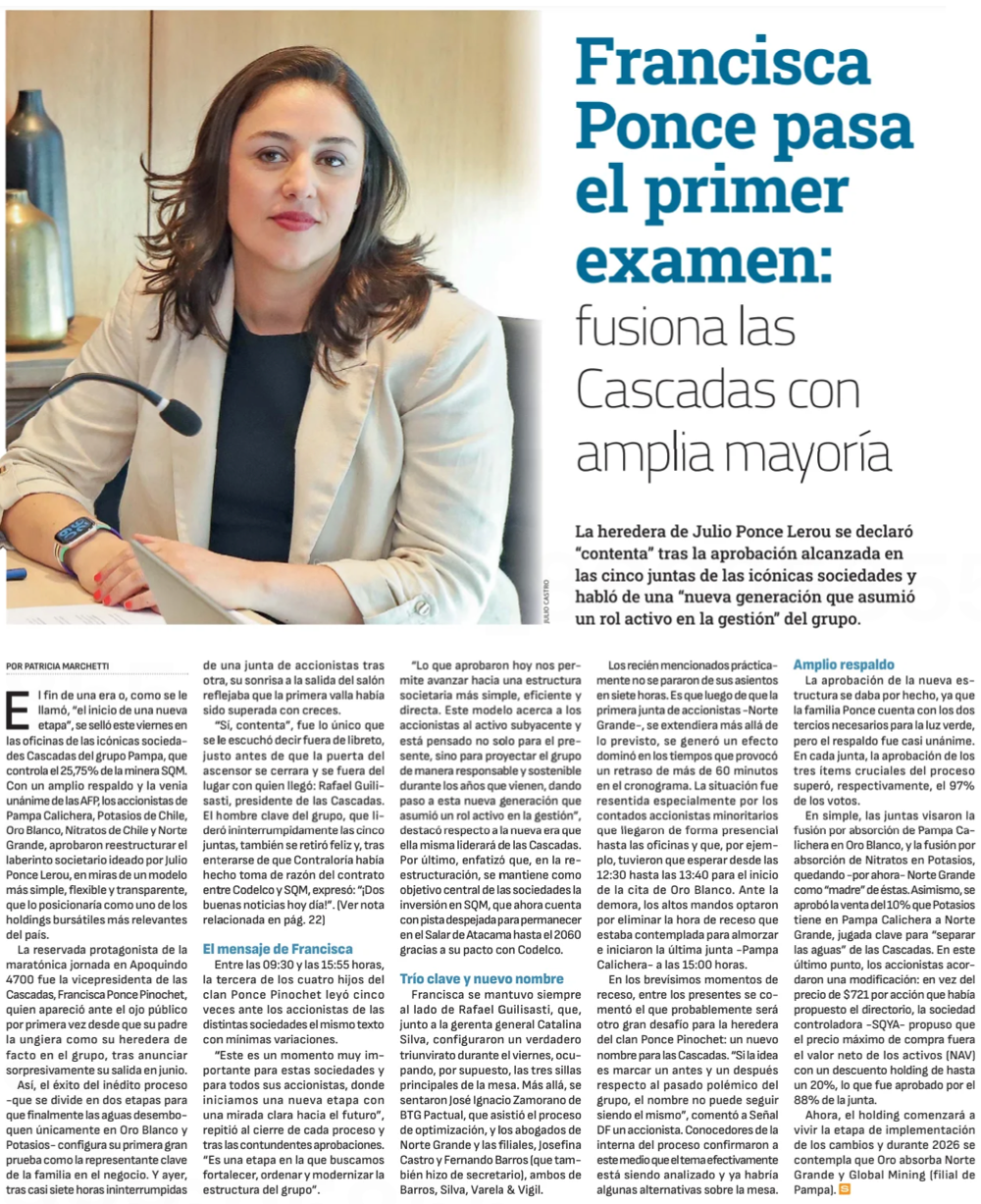 Cómo fue el estreno de Francisca Ponce, heredera de Julio Ponce, en las cascadas - (El Mercurio de Santiago)