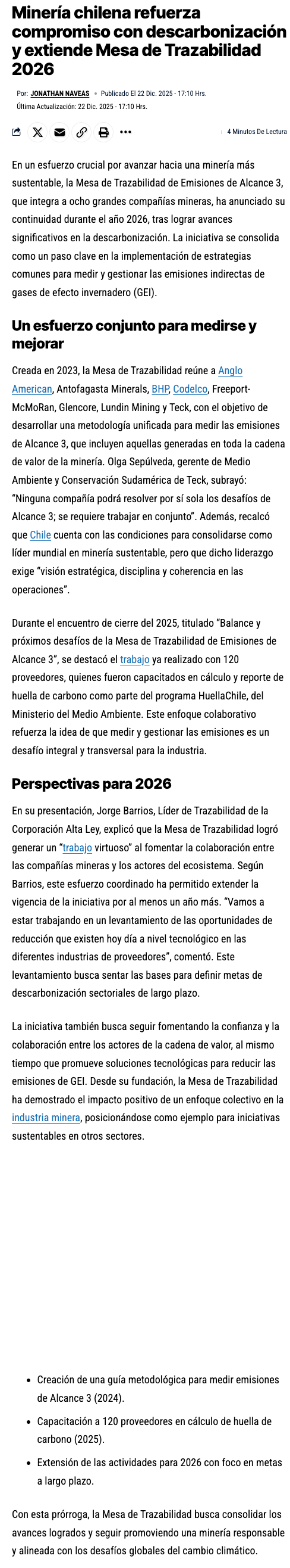 Mesa de Trazabilidad proyecta continuidad en 2026 tras avances clave en descarbonización minera - (reporteminero)
