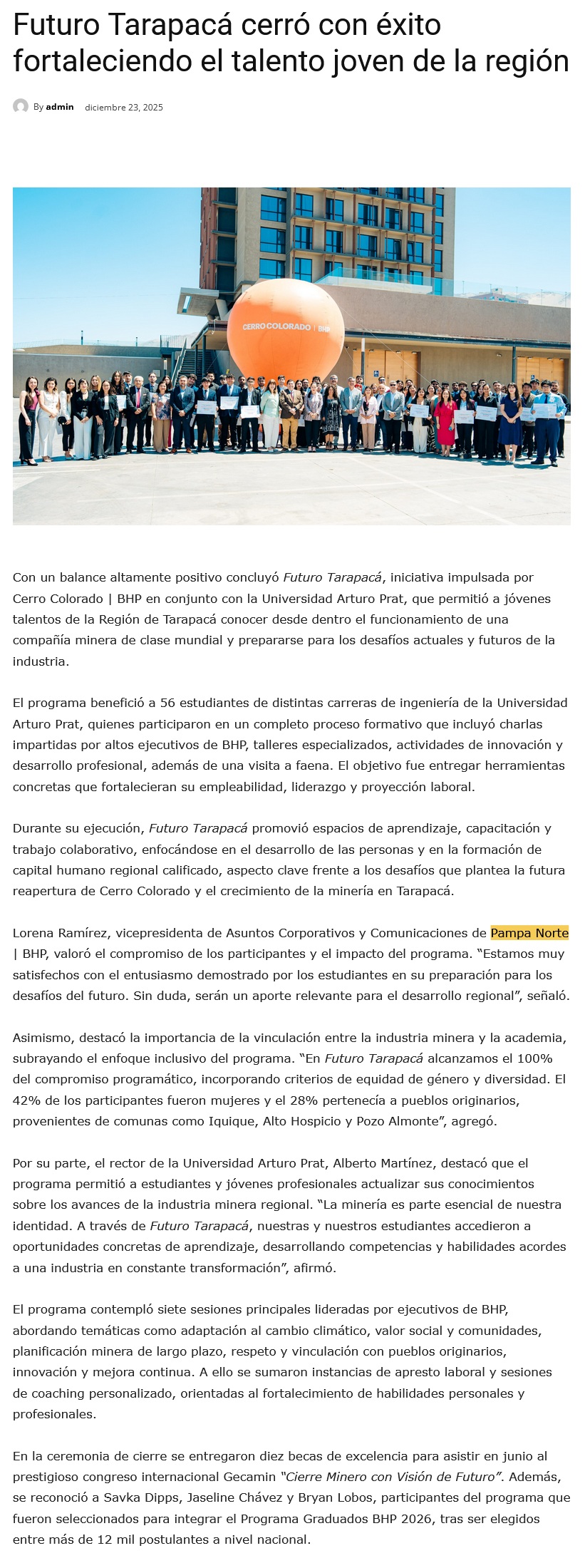 Entregan a jóvenes talentos de Tarapacá a través de charlas una visión actual de la minería - (soyiquique)