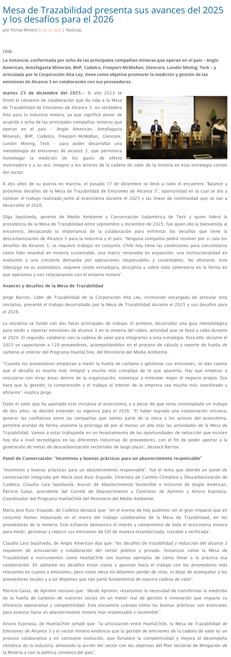 Mineras en Chile lideran trazabilidad de emisiones para impulsar minería sustentable - (redimin)