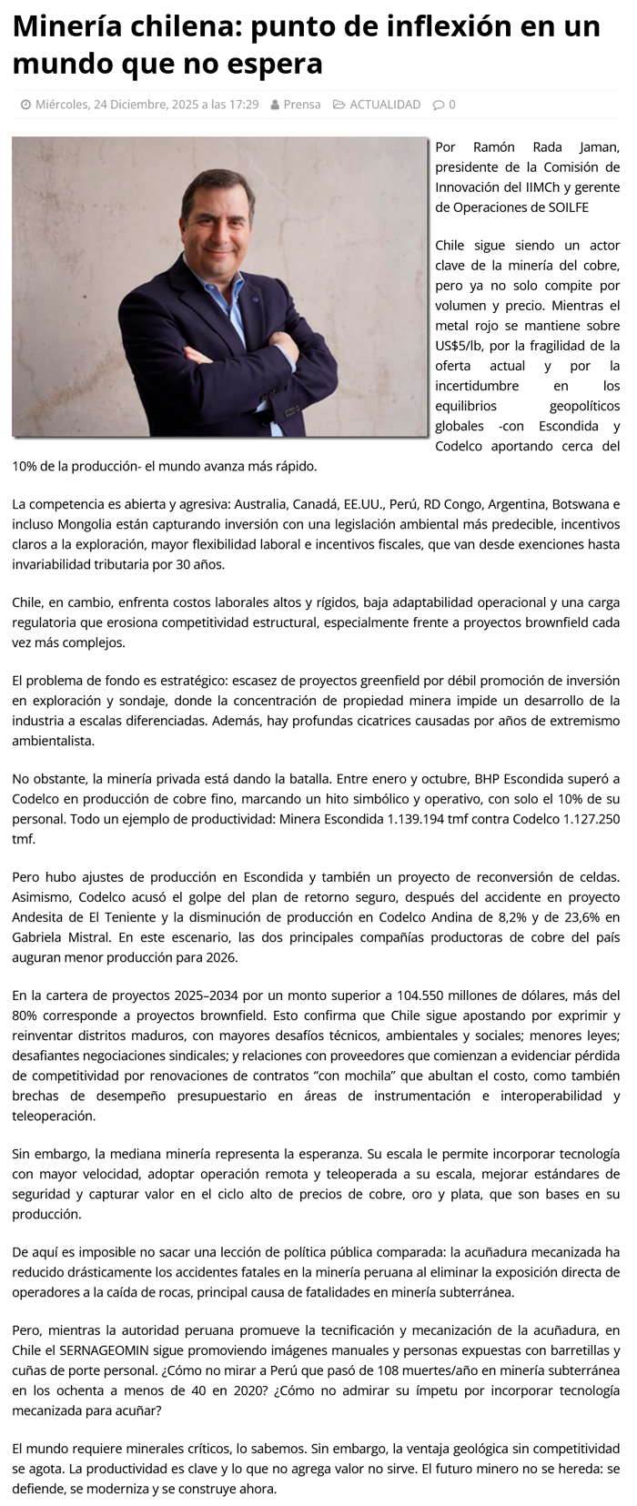 Minería chilena: Punto de inflexión en un mundo que no espera - (elreporterodeiquique)