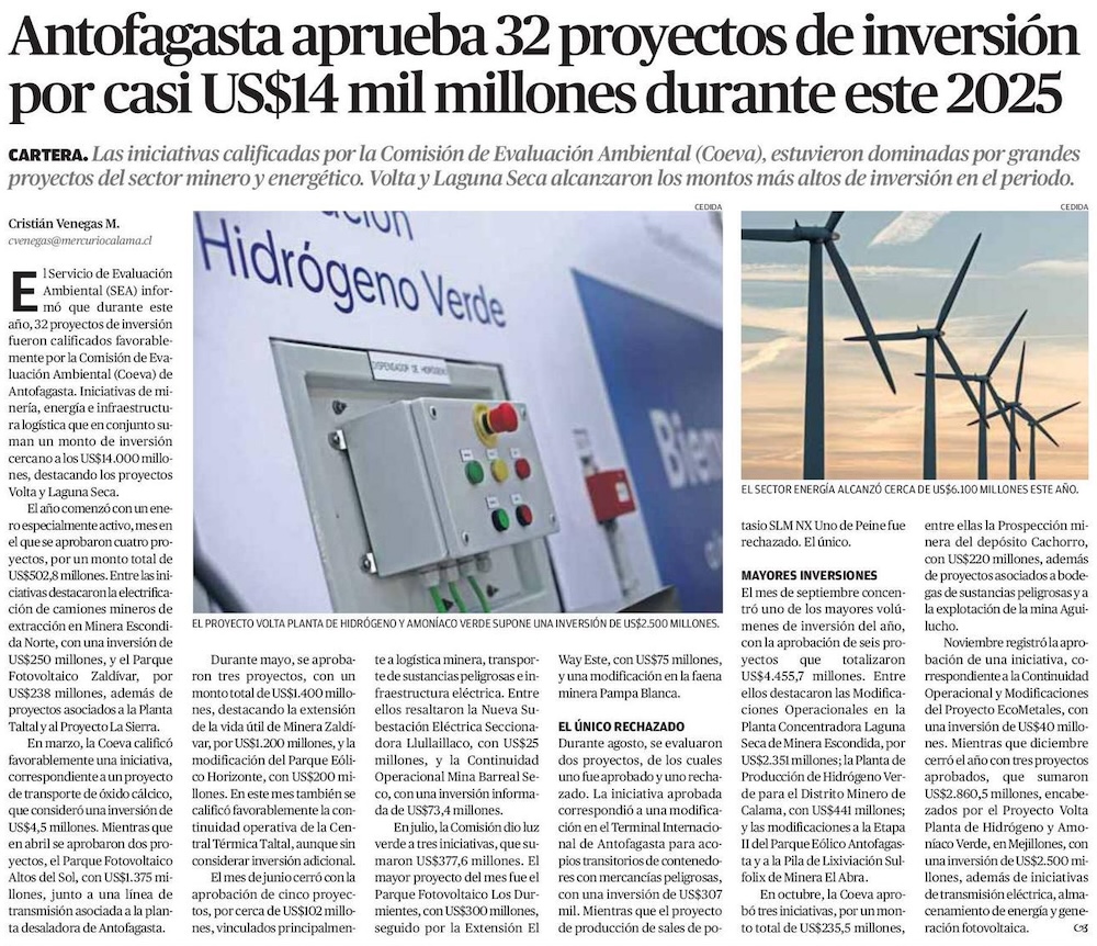 Antofagasta aprueba 32 proyectos de inversión durante el 2025 - (El Mercurio de Antofagasta)