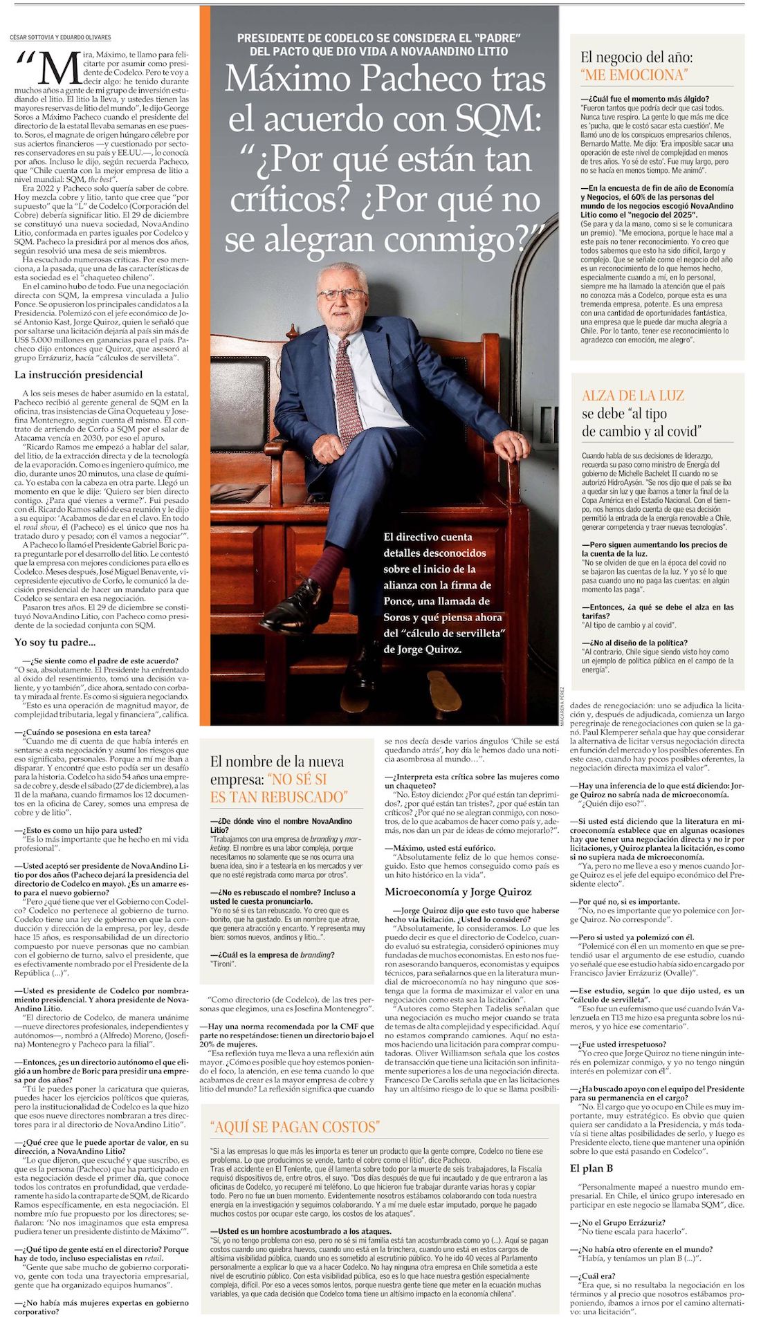 "Ahora vamos a acelerar el proyecto Salar Futuro y llegar durante 2026 con todos los estudios para someterlo a tramitación ambiental" - (Diario Financiero)