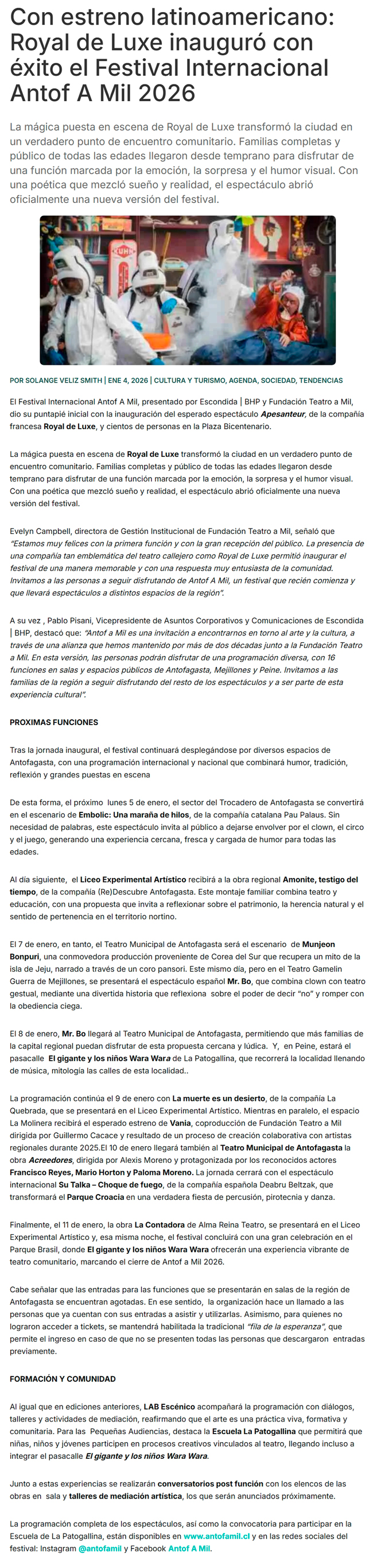 Con estreno latinoamericano, Royal De Luxe inauguró con éxito el festival internacional Antof A Mil 2026 - (antofacity.com)