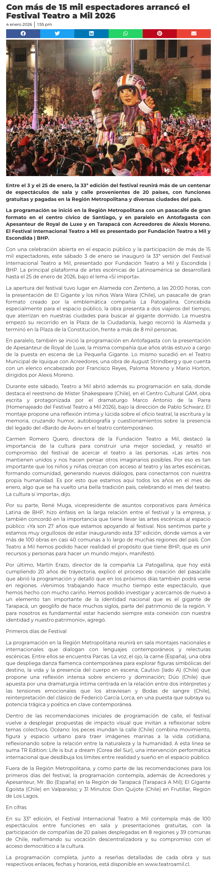 Con estreno latinoamericano: Royal de Luxe inauguró con éxito el Festival Internacional Antof A Mil 2026 - (madero.cl)