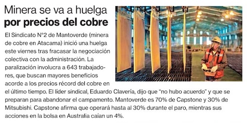 Sindicato de mina Mantoverde se va a huelga y advierte importantes pérdidas para la empresa - (biobiochile online)