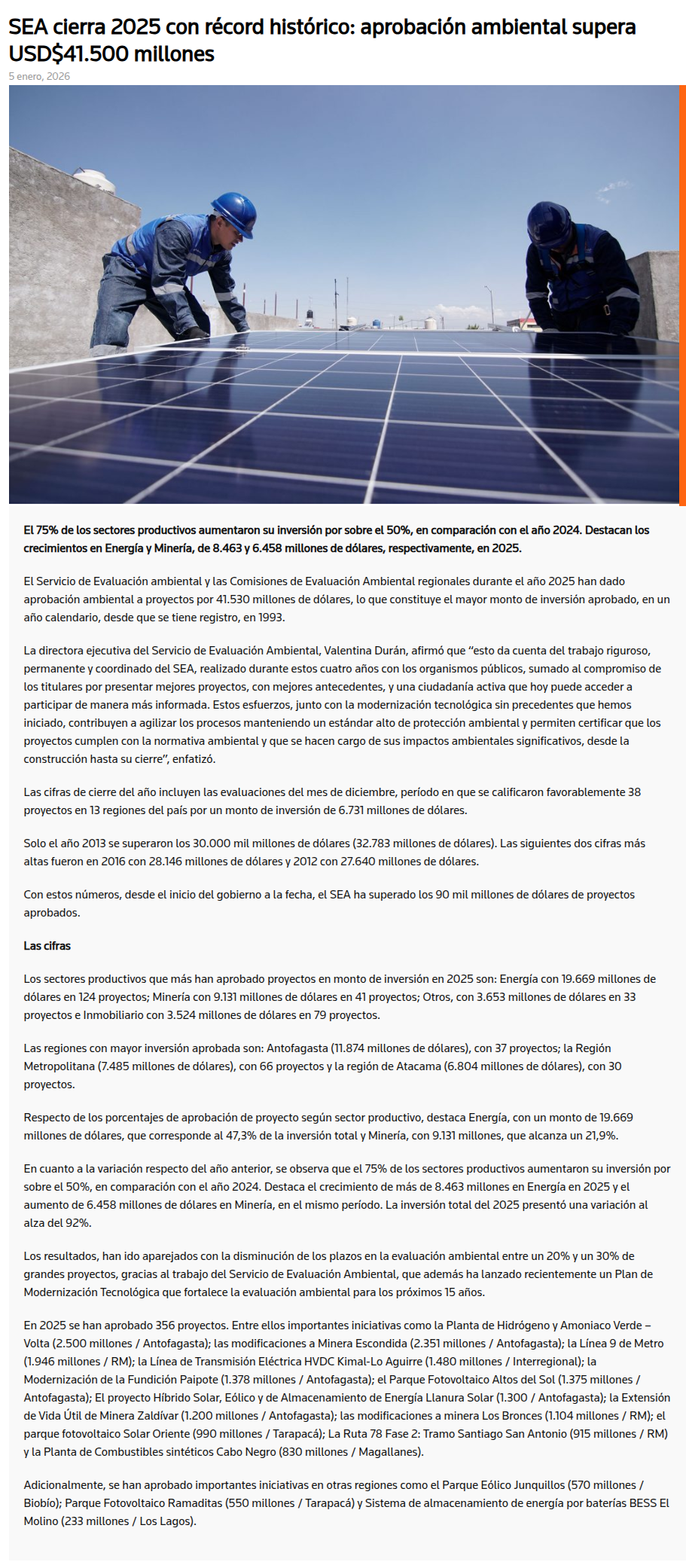 SEA cierra 2025 con récord histórico: Aprobación ambiental supera los US$41.500 millones - (mch.cl)