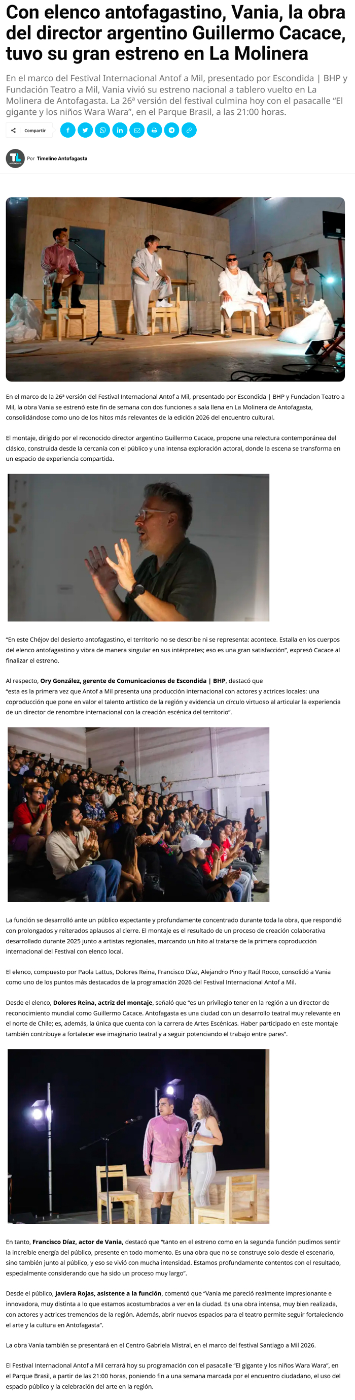 FITZA 2026 vuelve a llenar de teatro los barrios, plazas y escenarios de la Región de Antofagasta - (antofagastanoticias)