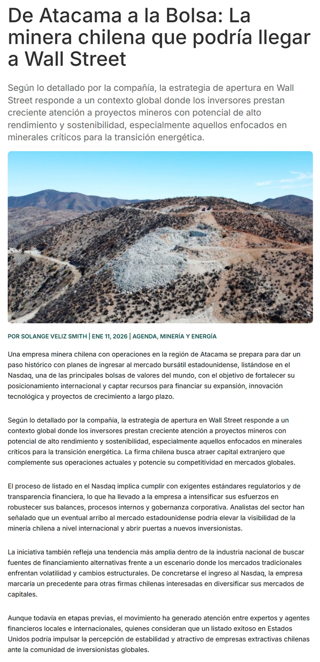 De Atacama al Nasdaq: la minera chilena que quiere llegar a Wall Street - (Diario Financiero)