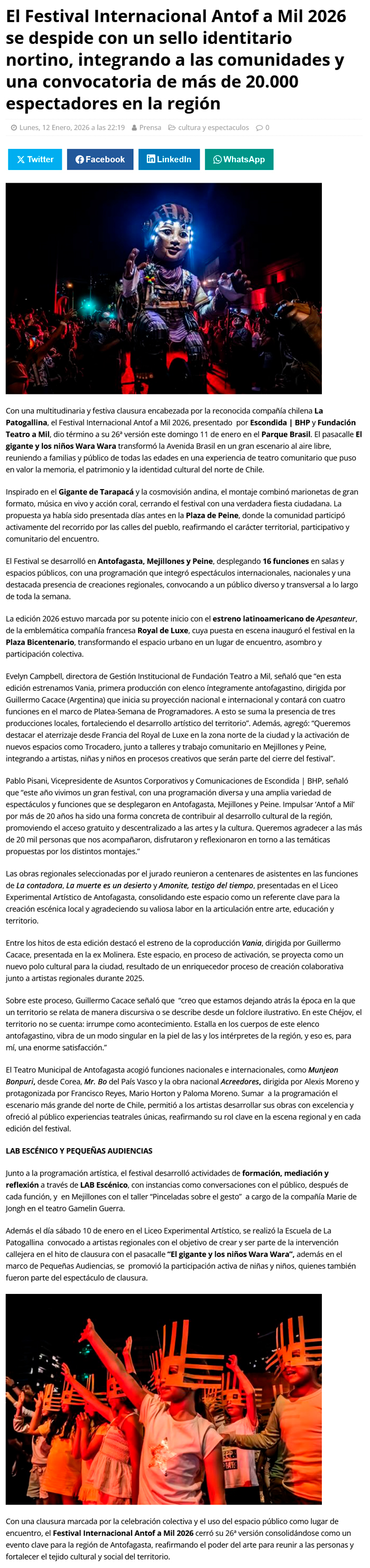 Más de 20.000 espectadores: Festival Internacional Antof a Mil 2026 se despide con un sello identitario nortino - (regionalista.cl)