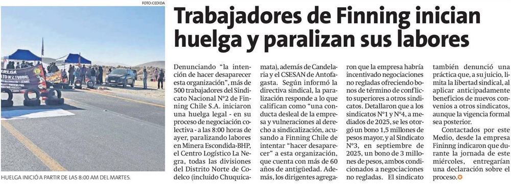 Trabajadores de Finning inician huelga legal y paralizan sus labores en Escondida - (soyantofagasta)