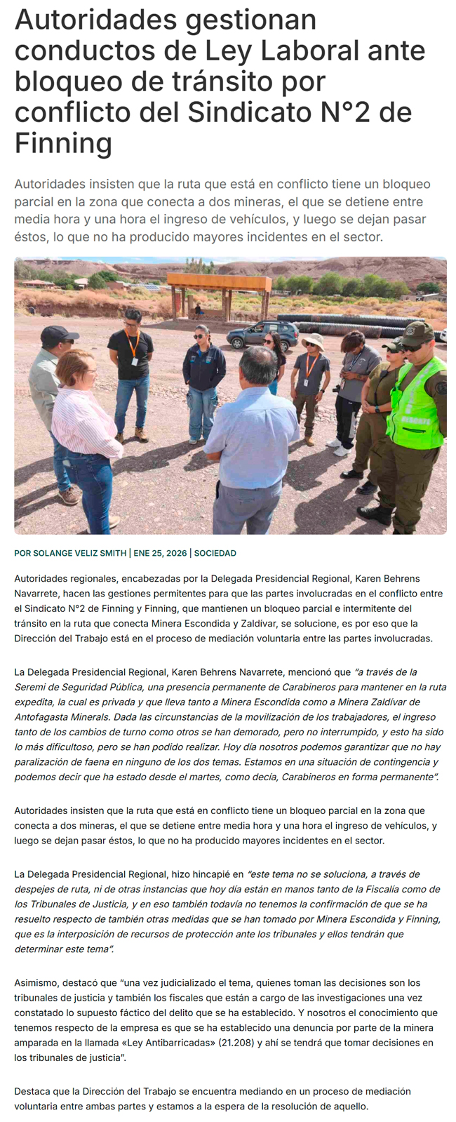 Autoridades siguen conductos que establece la Ley Laboral en conflicto del Sindicato N°2 de Finning - (desiertofm.cl)