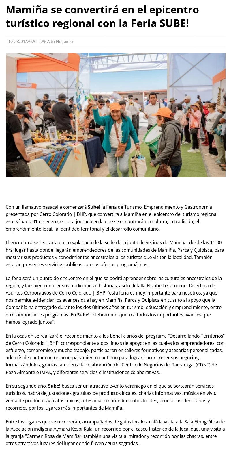 Mamiña se convertirá en el epicentro turístico regional con la Feria SUBE! - (El Longino de Alto Hospicio)