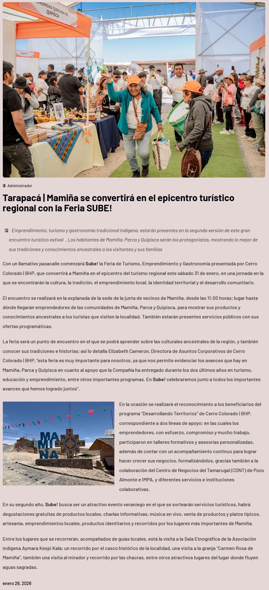 Mamiña se convertirá en el epicentro turístico regional con la Feria SUBE! - (El Longino de Alto Hospicio)