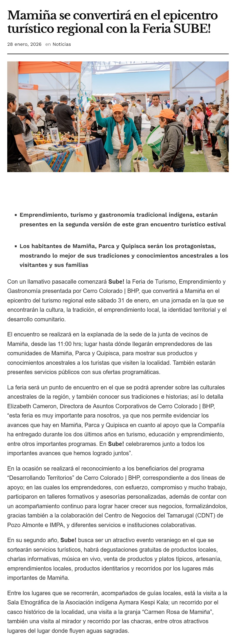Mamiña se convertirá en el epicentro turístico regional con la Feria SUBE! - (El Longino de Alto Hospicio)