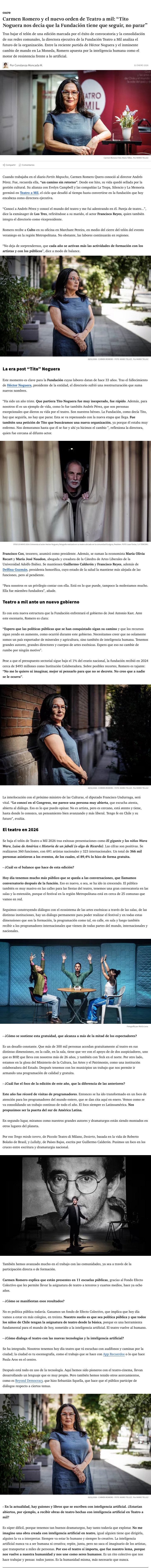 Carmen Romero: “Tito Noguera nos decía que la Fundación tiene que seguir, no parar” - (La Tercera)