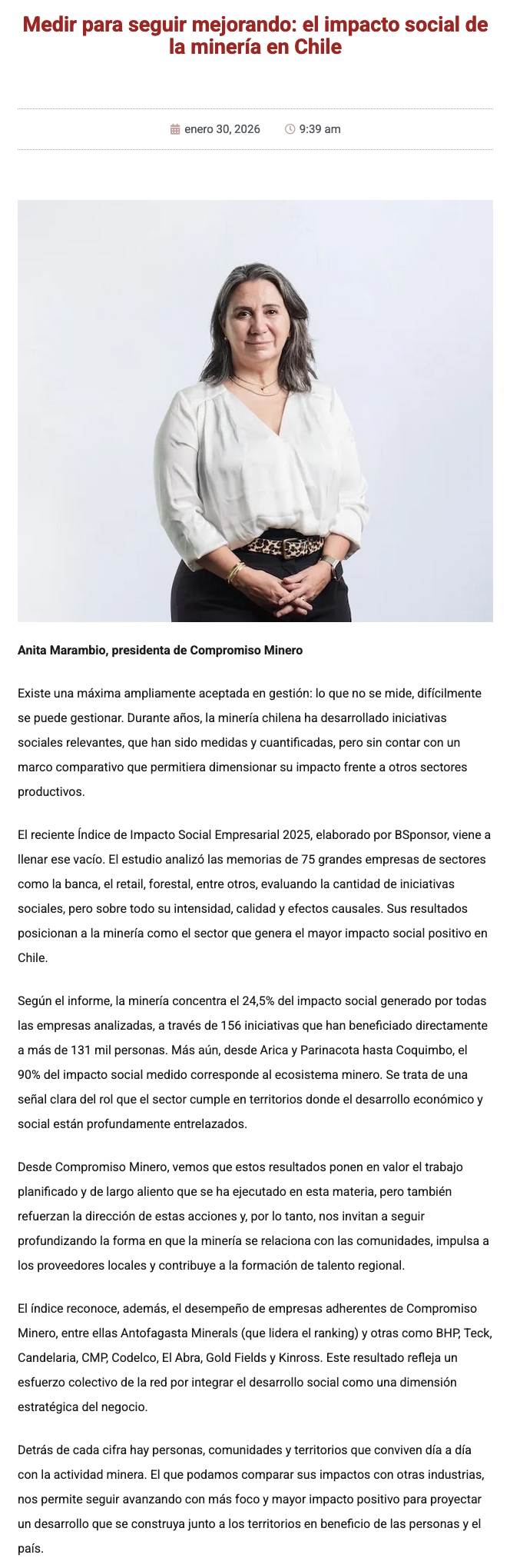 Medir para seguir mejorando: el impacto social de la minería en Chile - (g5noticias.cl)