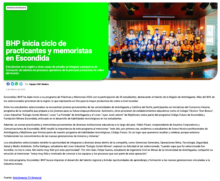 Escondida BHP inició nuevo ciclo de practicantes y memoristas: 80% son estudiantes de la región - (timeline)