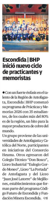 Escondida | BHP inició nuevo ciclo de practicantes y memoristas - (El Mercurio de Calama)