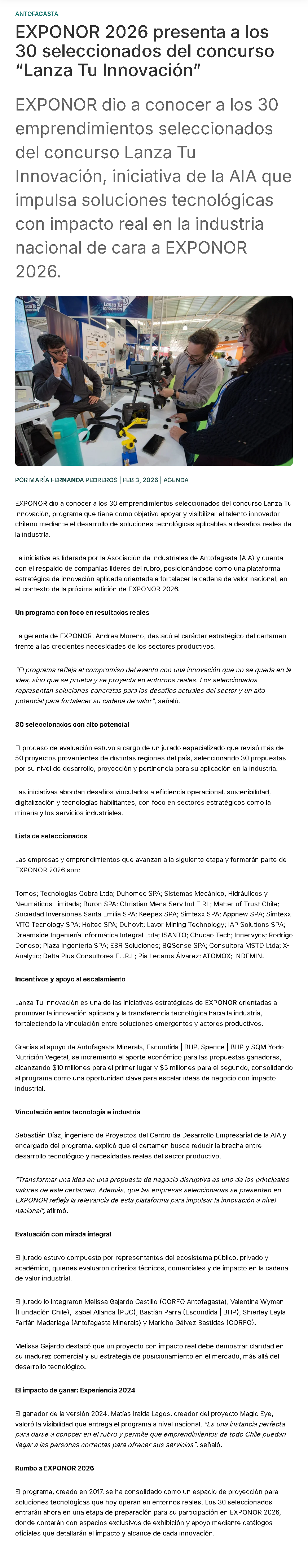 EXPONOR 2026 define 30 seleccionados en “Lanza Tu Innovación” para desafíos de minería e industria - (reporteminero)