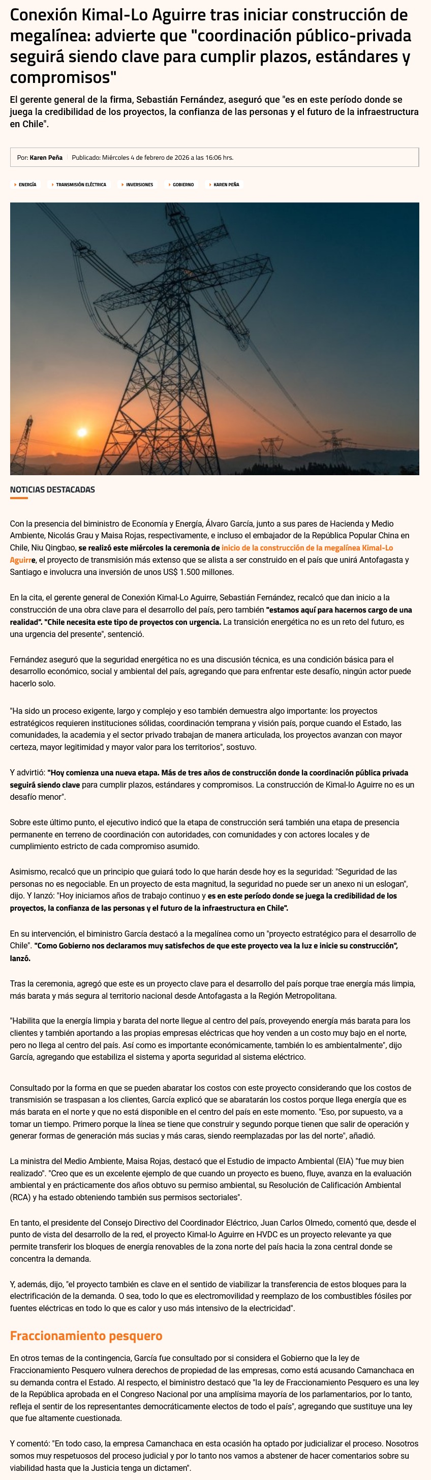 Empieza construcción de la mayor línea de transmisión en Chile - (El Mercurio de Santiago)