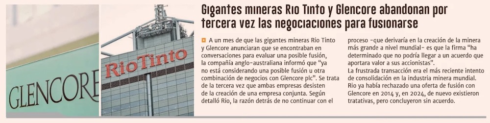 Se cae el acuerdo: Rio Tinto y Glencore bajan las conversaciones para crear la mayor minera del mundo - (biobiochile online)