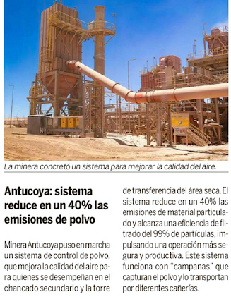 Antucoya puso en marcha innovador sistema de control de polvo que reduce en un 40% las emisiones de material particulado - (diarioantofagasta)