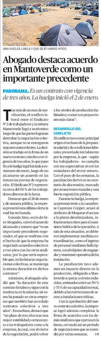 Fin a huelga de cinco semanas: Mantoverde y Sindicato Nº2 llegan a acuerdo con millonario bono para trabajadores - (DF Online)
