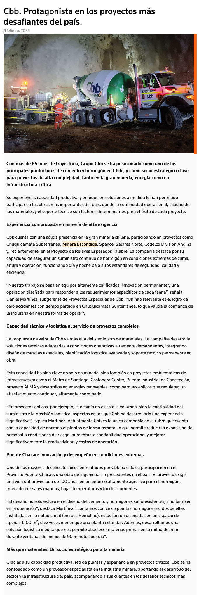 Cbb: Protagonista en los proyectos más desafiantes del país. - (nuevaminería online)