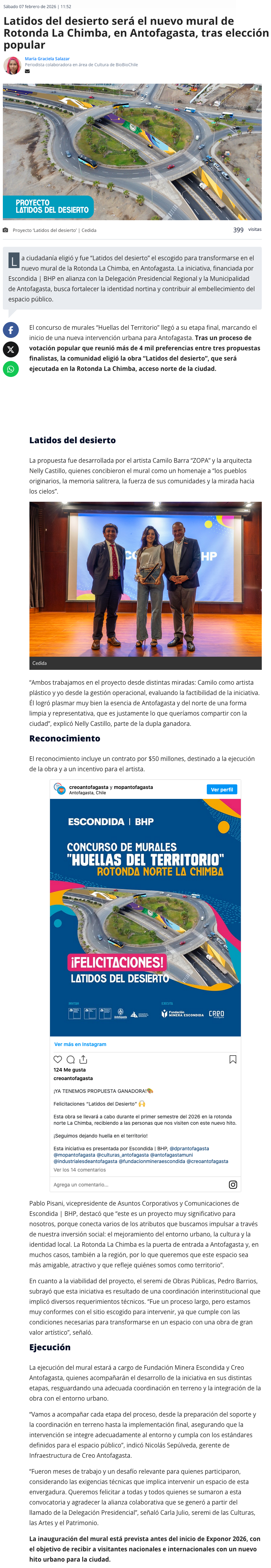 Latidos del Desierto será el mural en La Chimba - (La Estrella)