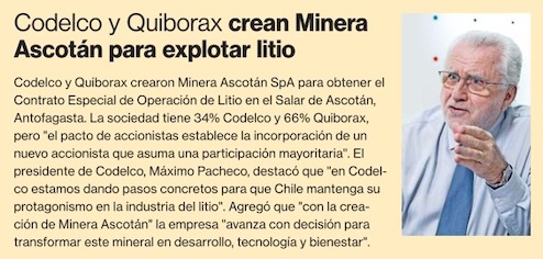 Codelco y Quiborax crean joint venture para obtención de CEOL y así explotar litio en el Salar de Ascotán - (electromineria.cl)